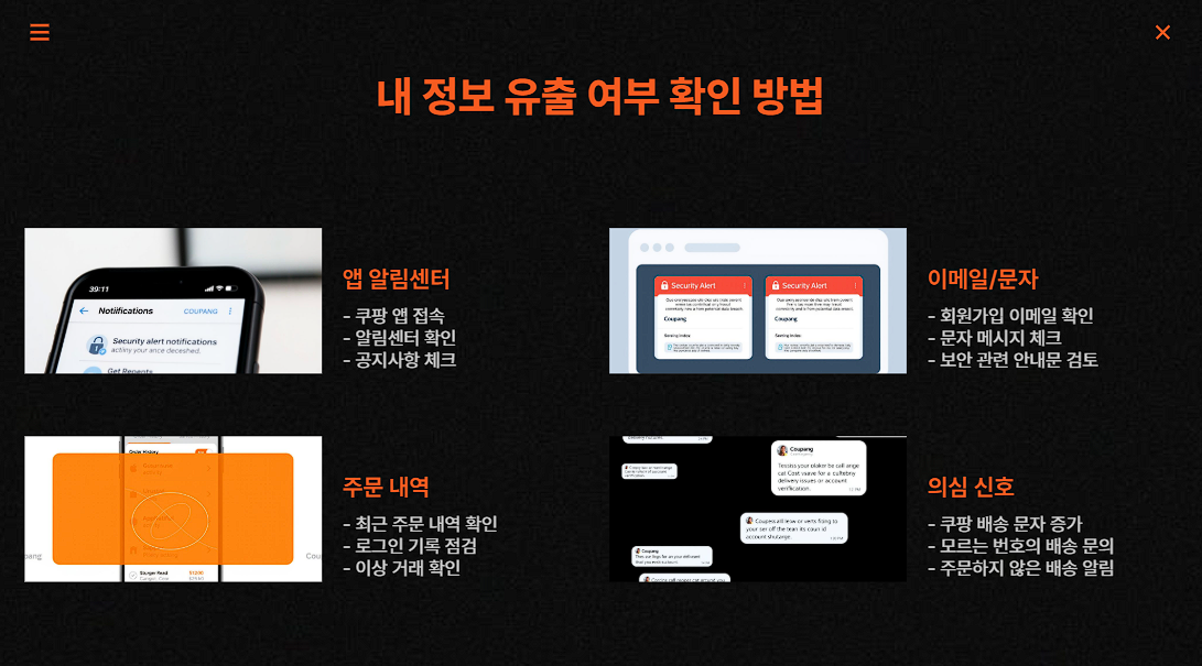쿠팡은 사건 이후 유출 대상자에게 안내 문자와 이메일을 보냈고,